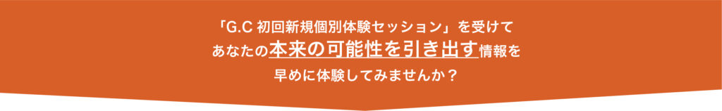 ※「G.C新規個別体験セッション」の詳細は、直接来所もしくはズームorスカイプとなります。まずは下記のページからお申し込みいただき、「 意識を変えると月収1桁上がる高額メイキング 」のマンツーマン個別セッションを受けてみてください。